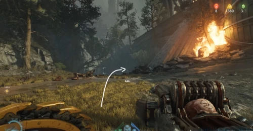 Продолжайте двигаться на юг, идя по тропинке, и вскоре вы обнаружите очередное орудие – разрушьте его щитом, а потом подберите 8 слитков.