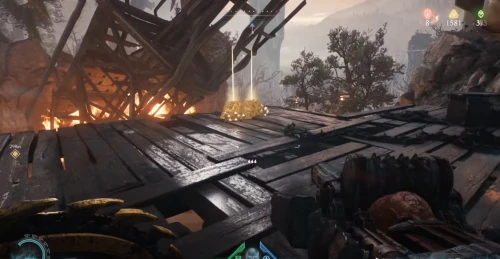 Отправляйтесь на север от ранее полученного драгоценного камня, и вы обнаружите впереди 5 слитков. Продолжайте двигаться по дорожке вперед и влево для нахождения еще 4 слитков. Затем сломайте деревянную преграду и продолжайте двигаться вперед к артиллерийскому орудию.