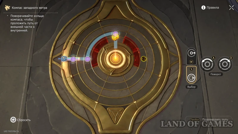 В центральном зале пройдите к участку с алым заражением, отделяющим вас от Компаса западного ветра. Удалите препятствие и заберите ларец, стоящий перед выходом к головоломке с радужными мостами.