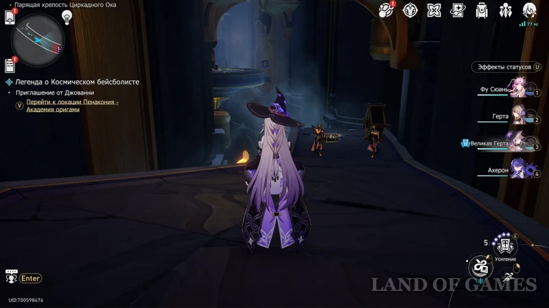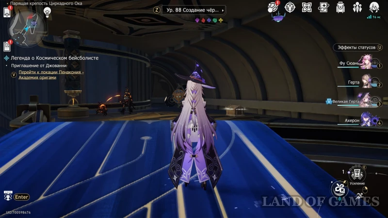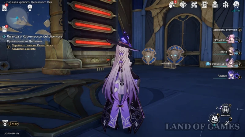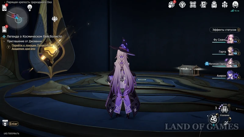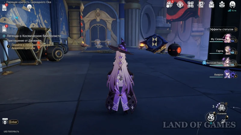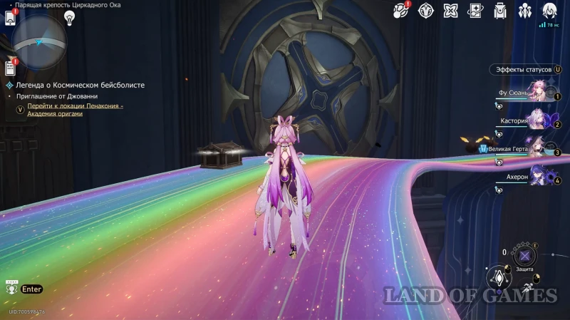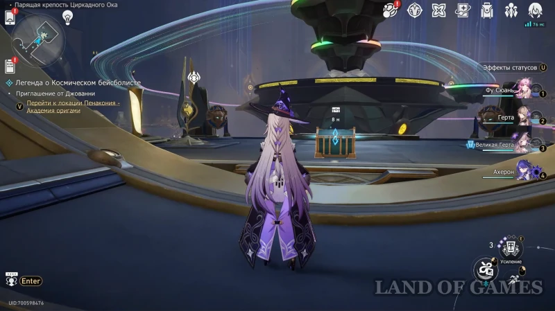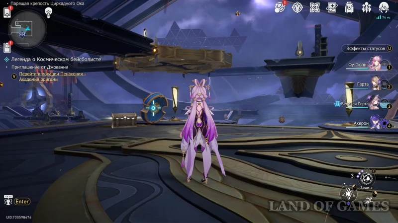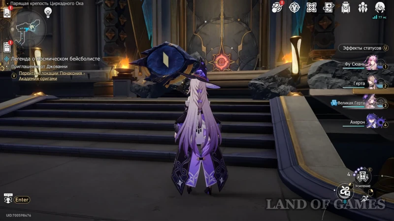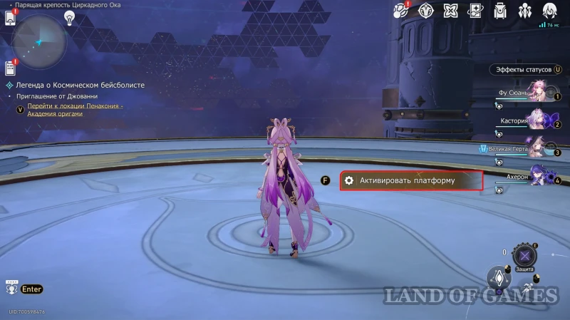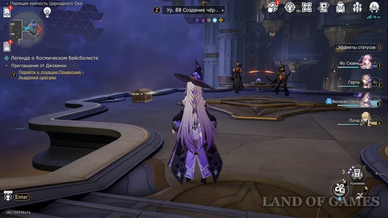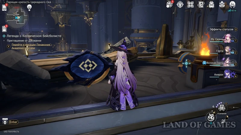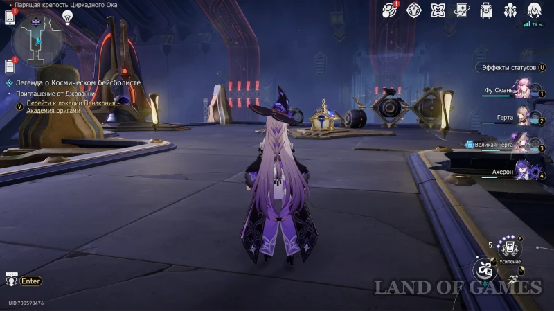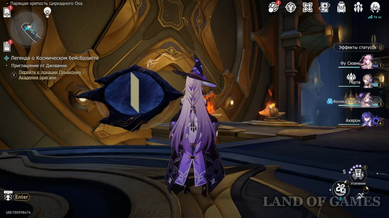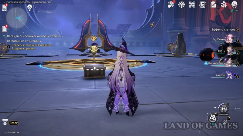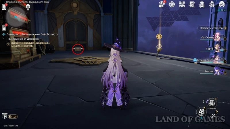 Попадите на участок с якорем «Костяк ночи» на западе карты (сюда можно переместиться по стеле Тайной тропы, находящейся левее стартового телепорта). Далее спуститесь на юг и вступите в битву с сильным противником. Вам будет легче победить, если в команде будут герои физического, огненного или квантового элементов (это уязвимости главного врага, остальные видно на третьем скриншоте выше).