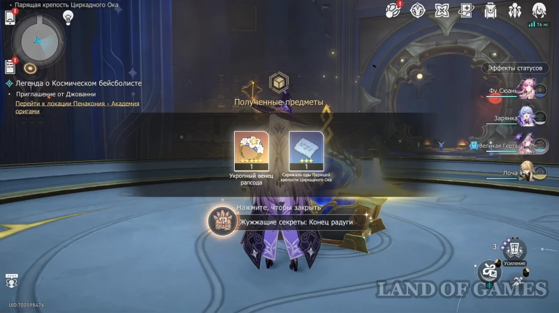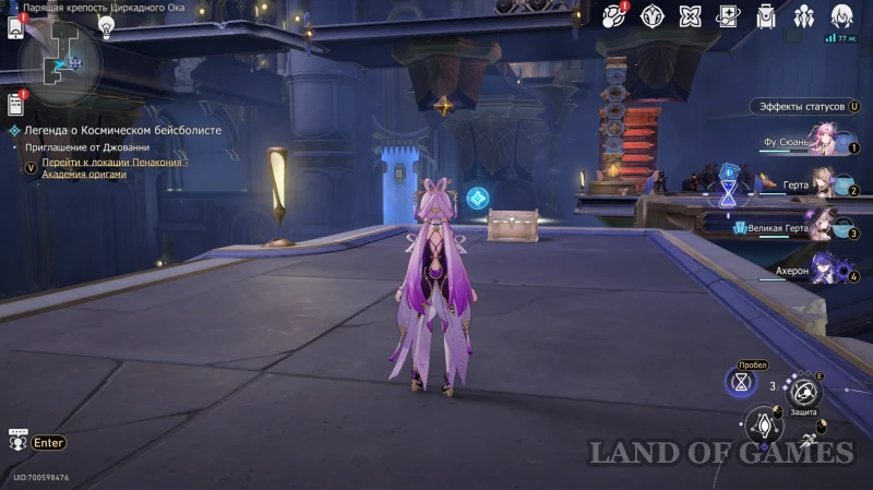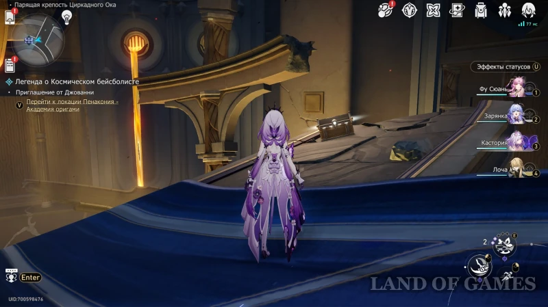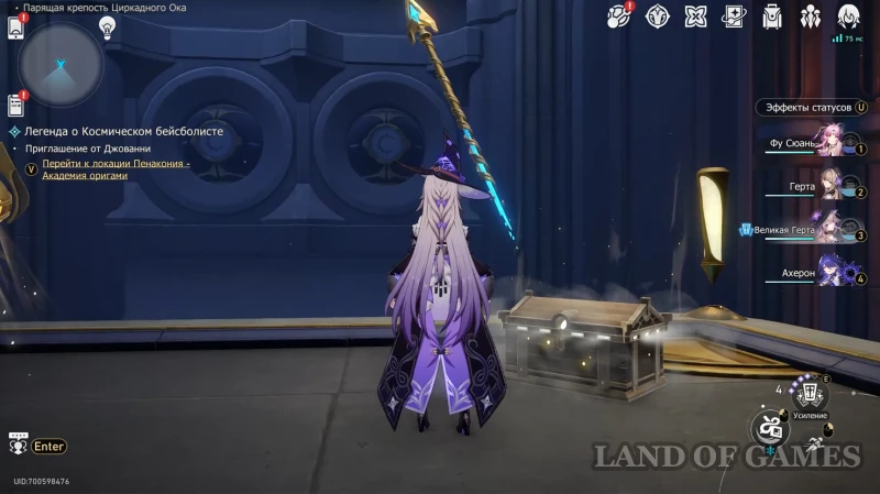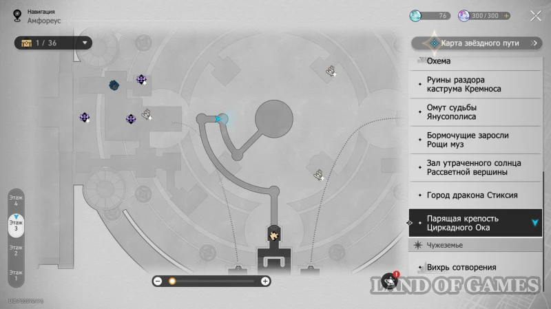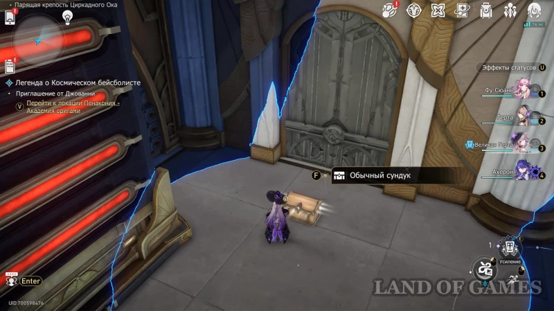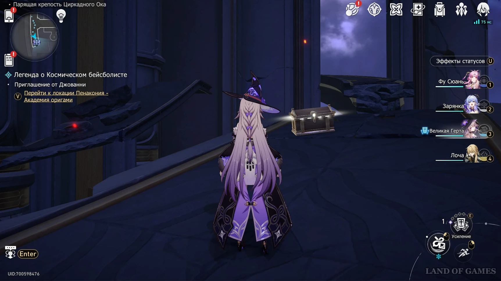 Поиск сокровищ в разрушенной Парящей крепости предлагаем начать со стартового якоря на юге карты («Руины слез ночи»). Первый сундучок стоит справа от телепорта, на площадке со стелой Тайной тропы.