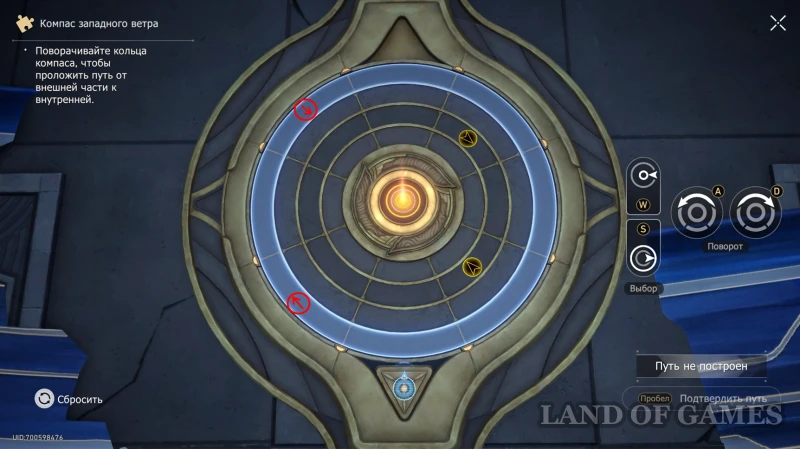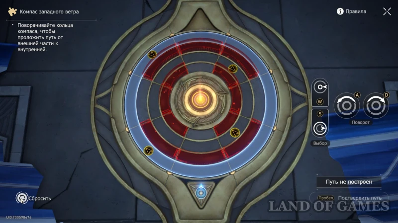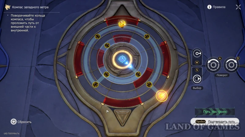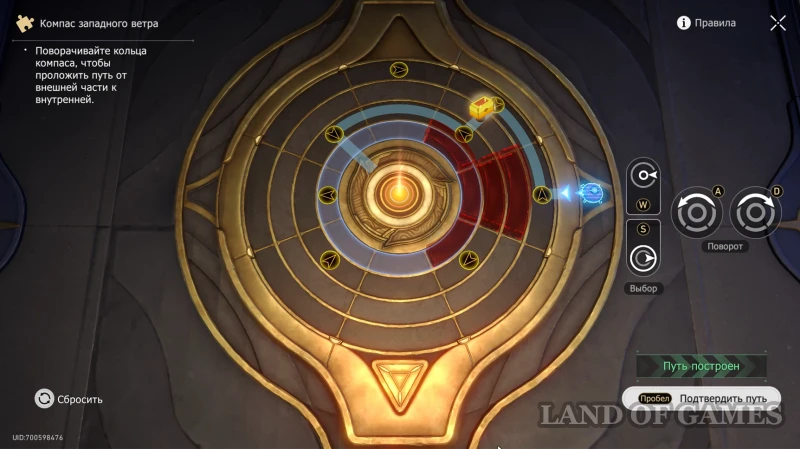 Проведите настройку двух уровней головоломки, как это показано на скриншотах выше (первый путь выстраивается с края, а второй — изнутри компаса).