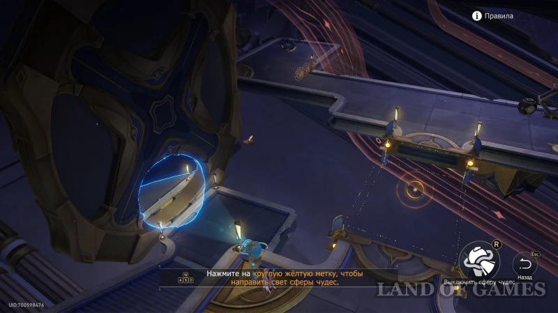Доберитесь до Сферы чудес на южной половине исследуемого зала, активируйте ее и оставьте на стене слева. После можете спуститься и забрать сундучок за растворившейся преградой.