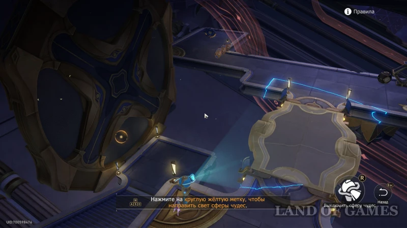 Вновь подойдите к используемой в прошлом пункте Сфере, переведите прожектор на силуэт мостика и бегите по нему к Плите пророчества (она за щитами слева).