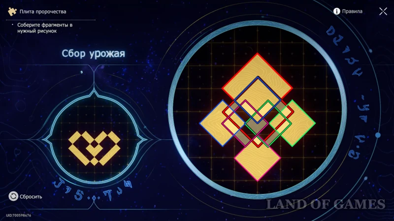 От места получения прошлого сундука идите на север и решите стоящую перед тупиком Плиту пророчества «Сбор урожая» (используйте скриншот-подсказку выше). За решение будет выдан трофей с ценным наполнением.