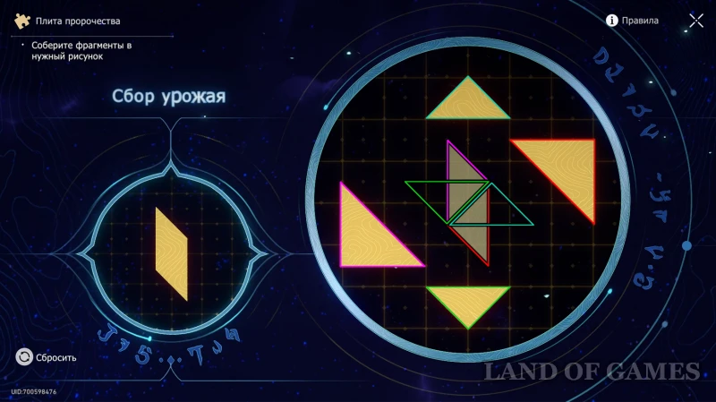 Вы залутаете ценную сокровищницу после решения фигурного пазла «Сбор урожая» (подсказка к расстановке силуэтов есть на втором скриншоте выше).