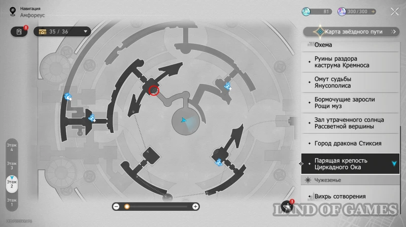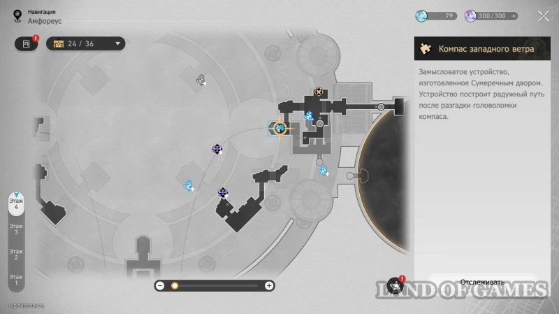 Далее направляйтесь к северному краю платформы на нижней половине 3-го этажа — здесь предстоит отрегулировать Компас западного ветра.
