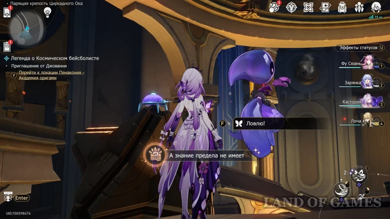 Доберитесь до «Золотой купели» по центру первого этажа карты, спуститесь по синей ткани и найдете один обычный сундучок. На каменном шестиграннике напротив трофея будет сидеть нимфа, которую украдет Воровской дух (за его возвращение дадут 40 нефритов и 60 амброзии). Вернув Всезнающего жучка на место, получится открыть ачивку «А знание предела не имеет».