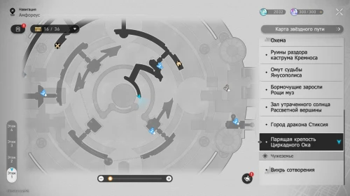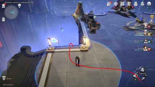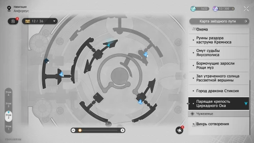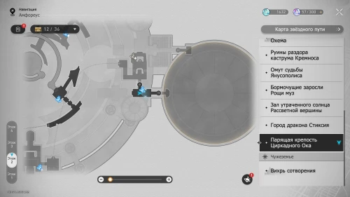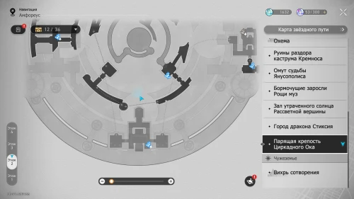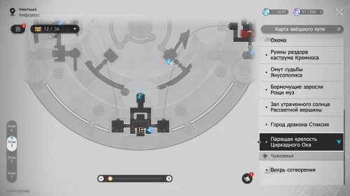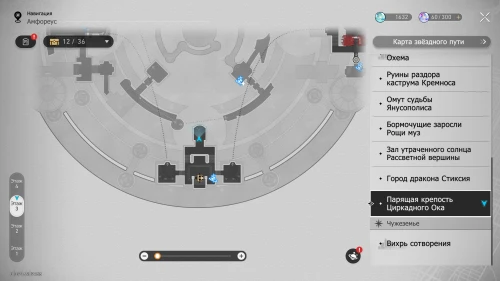 Вот ваш штраф за превышение скорости – Разбейте очень быструю летающую амфору в Парящей крепости Циркадного Ока. Переместитесь к якорю «Основание утраченной крепости» в Парящей крепости Циркадного Ока, а затем пройдите вперед и поднимитесь на подъемнике вверх, чтобы попасть в просторную область с трехмерной картой.