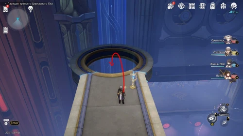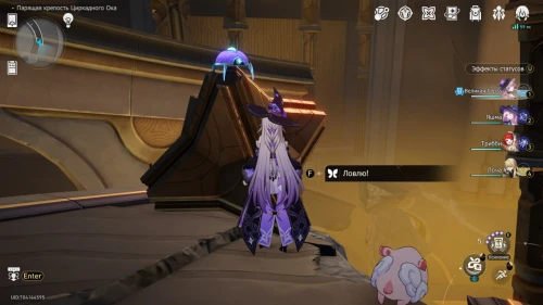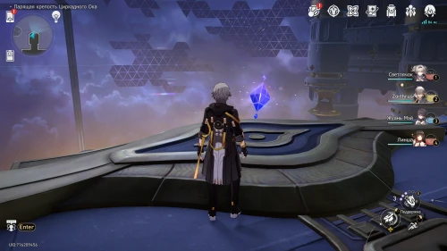 Заштопать небо – Обнаружьте последний фрагмент воспоминаний лучезарной целительницы. Переместитесь к якорю «Руины слез ночи» в Парящей крепости Циркадного Ока, а затем пройдите вперед на край площадки, взаимодействуйте с фиолетовым кристаллом и просмотрите воспоминание Гиацины.