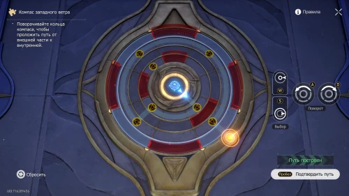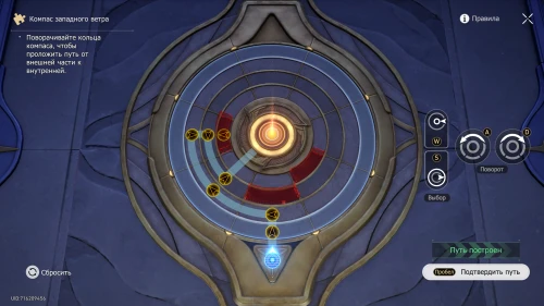 Прощайте, все летающие амфоры! – Разбейте все летающие амфоры на длинном радужном пути. Переместитесь к якорю «Руины слез ночи» в Парящей крепости Циркадного ока и спуститесь вниз к компасу западного ветра. Настройте его так, как показано на скриншотах ниже.