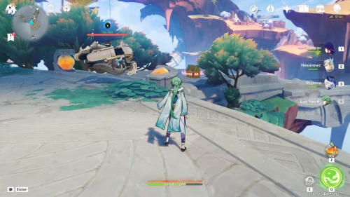 Вернитесь к упомянутому телепорту и теперь пройдите на восток, к озеру из жидкого флогистона. На его южном берегу группа хиличурлов охраняет сокровище. Советуем использовать лучников и держаться от врагов на расстоянии, чтобы не получить урон от взрывных бочек.