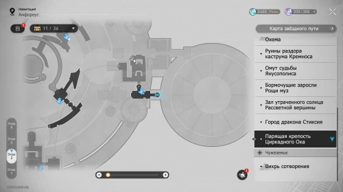 Телепортируйтесь к якорю «Основание утраченной крепости» на 2-м этаже указанной области, а затем пройдите через дверь впереди и поднимитесь на подъемнике вверх, чтобы попасть в просторный зал с трехмерной картой.