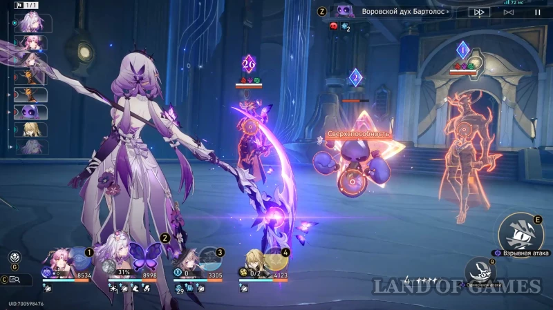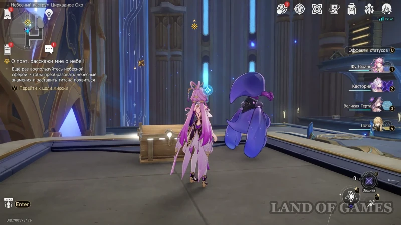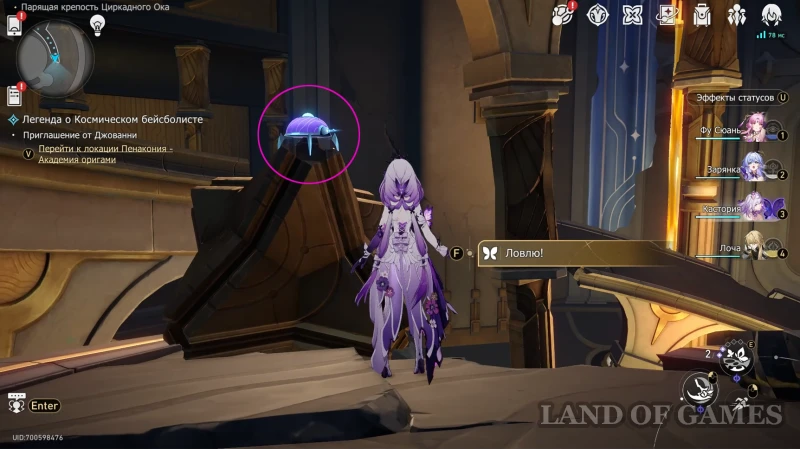 Подойдите к якорю «Двор плывущих теней» и попробуйте прикоснуться к золотистому тюленю. После попытки появится дух-воришка, которого нужно не только изловить, но и победить (вас ждет битва против трех Бартолосов, для победы нужно использовать указанные на противниках навыки). Покончив с ним, вы получите доступ к одному обычному ларцу.