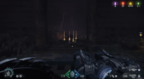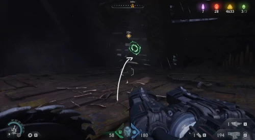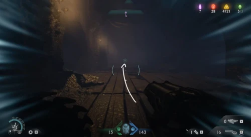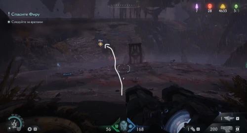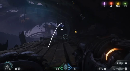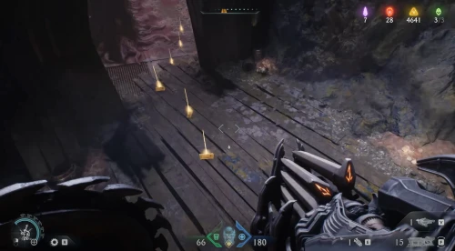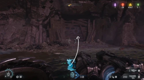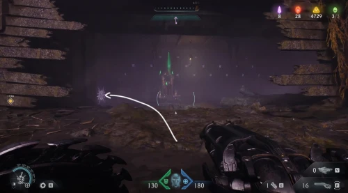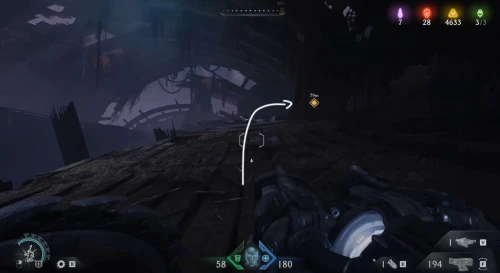 Возвратитесь на предыдущую площадку и двигайтесь вслед за маркером к двери с глазом, но, не доходя до нее, сверните вправо и разломайте деревянную преграду щитом, чтобы обнаружить за ней 3 слитка.