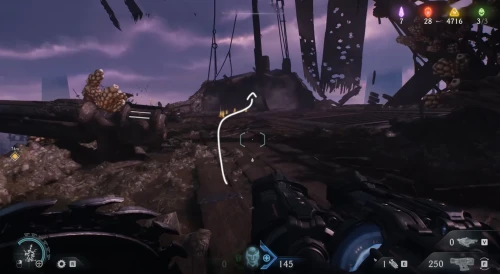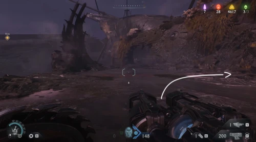 Двигайтесь вслед за указателем, пока не доберетесь до следующей красной боевой зоны, где вам предстоит сразиться с очередным главарем. Победив его в бою, вы перманентно повысите максимальный боезапас гвоздей у главного героя.