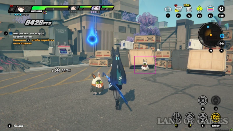 Следующего банбу получится повстречать на карте Старого НИИ, неподалеку от телепорта «Площадь на 1-м этаже». Найдите и кликните по метке кролика на карте, а затем нажмите «Включить». Вас телепортирует максимально близко, а отслеживание покажет расстояние до цели в метрах.