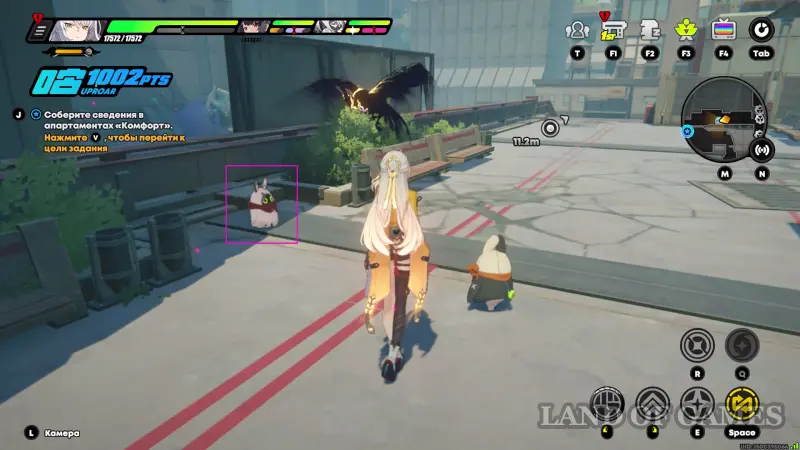 Приняв задание, вы попадете на новую карту. Останется спуститься от телепорта «Вход в апартаменты» на лифте и поговорить с банбу, стоящим у края дороги, ведущей к квестовой метке.