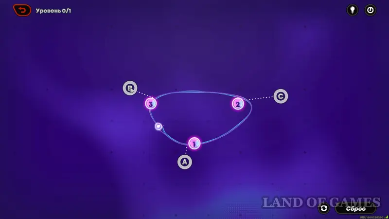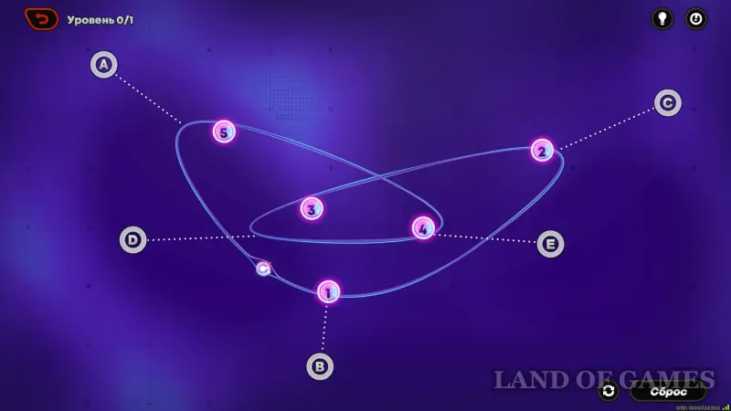 Если у точки нет цифры, через нее можно проходить в любом порядке. Направления движения шарика можно менять с помощью кнопки ⭮ разворота (около «сброса»).