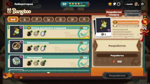 Тут все максимально просто – после отправки банбу в новые области вы почти всегда будете находить чертежи новых товаров. После этого вам необходимо лишь пройти в раздел «Разработка», выбрать открытый рецепт и создать новое изделие. В будущем у вас также разблокируется возможность улучшения товаров.