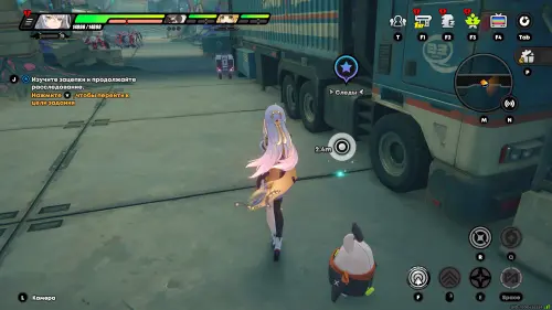 Получив нужную информацию, двигайтесь по основной дороге к следующему маркеру и рядом с грузовиком изучите Следы. Бегите дальше (сражаться с врагами тут необязательно) и изучите вторые Следы возле контейнера. Двигайтесь еще глубже в локацию и пройдите через мост. Неподалеку от переключателя лифта вы найдете третью зацепку.