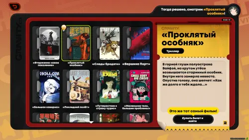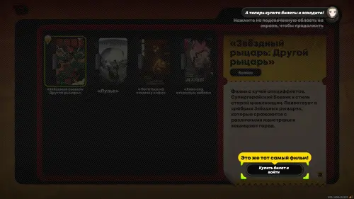 Затем выберите соответствующий раздел в меню ивента, пригласите Астру на кинопоказ и купите билеты на фильм «Проклятый особняк».