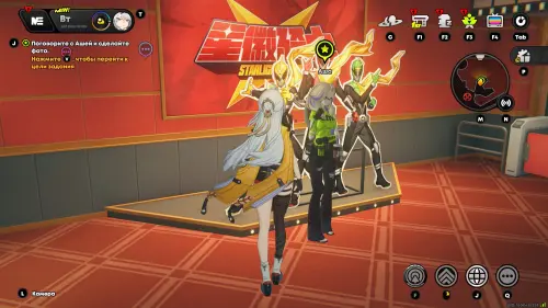 После просмотра фильма подойдите к Аше и сфотографируйтесь с ней рядом со стендом Звездных рыцарей. Снова поболтайте с девушкой и переходите к следующему этапу.