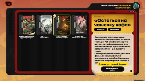 Отметим, что весь процесс киносеанса с ответами и разговорами можно просмотреть в нашем видео ниже. Если вы будете следовать нашим инструкциям, то получите рейтинг «Притяжение душ» и сможете послушать заметки от Энби.