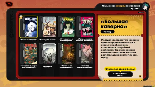 Возвратитесь в кинотеатр. Здесь вы обнаружите Орхидею – поболтайте с ней. Она расскажет вам о том, что хотела бы посмотреть сейчас. Затем купите билеты на кино «Большая каверна».