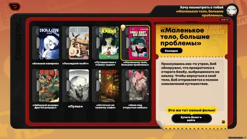 Затем выберите соответствующий раздел в меню ивента, пригласите Энби на кинопоказ и купите билеты на фильм «Маленькое тело, большие проблемы».