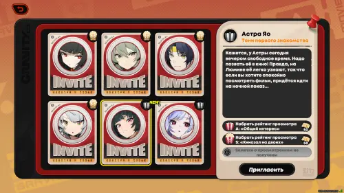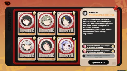 Затем выберите соответствующий раздел в меню ивента, пригласите Вивиан на кинопоказ и купите билеты на фильм «Вершина порт».