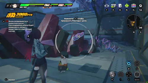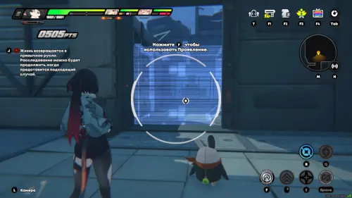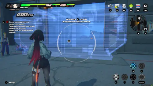 Переключитесь на ярус «Высотка: запад». От маяка «Вход в складскую зону» идите вперед, перебегите через мост и сверните налево. Используйте технику Проявления, чтобы избавиться от преграды перед вами.