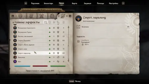 Независимо от стадии вампиризма, игрок получает 100% устойчивость к болезням и параличу.
