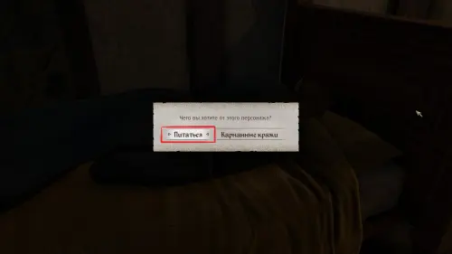 Просто подойдите к кровати со спящим npc и взаимодействуйте с ним. Убедитесь, что рядом никого нет, и вы находитесь в скрытном режиме. Выберите кнопку «Питаться» и дождитесь пока ваш персонаж не закончит свое дело.
