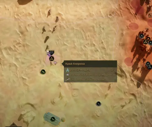 Первая точка – край Ахерона, к счастью, не все места в Шеоле покрыты радиацией и это одно из них. Это база Харконненов, место достаточно закрытое, и сюда можно добраться на песчаном байке, грузовике или орнитоптере, но последний предпочтительнее. Внутри вас встретят вооруженные враги, так что о броне лучше позаботиться заранее.