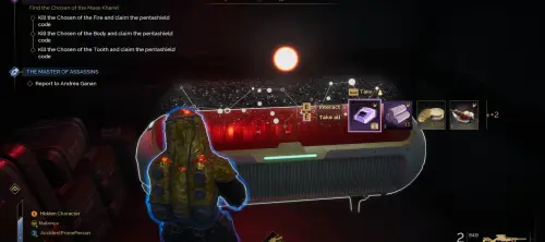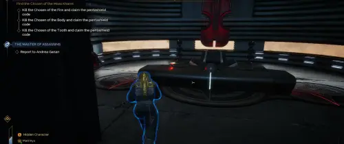 Вместо этого поверните налево от двери, затем направо, здесь вы найдете узкий проход, подсвеченный фиолетовым цветом, в конце которого будет спрятан браслет. Забрав его, возвращайтесь и двигайтесь к передней части корабля, где находится основная комната с чертежом. Пройдите через дверь с силовым полем – чертеж будет лежать в подсвеченном сундуке.