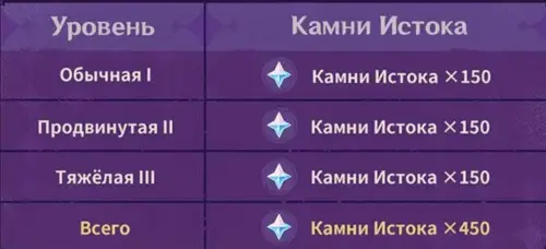 На протяжении всего события за завершение испытаний на обычной, продвинутой или тяжелой сложности можно получить 150 примогемов, то есть общее вознаграждение составит 450 камней истока. Если же вы пройдете этапы на зловещей и бесстрашной уровнях, то получите по одной штуке Пыли просветления.