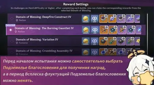 Накопив определенное количество прогресса наград, вы сможете получить дополнительные 5-звездочные артефакты из выбранного Подземелья благословения. Число подобных наград ничем не ограничено. Однако ваш ранг приключений должен быть не ниже 45-го.