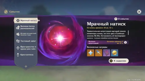 Проходить последний квест необязательно, однако он позволит вам глубже вникнуть в сюжет события. Итак, выполнив все требования, перейдите в меню ивентов, найдите там «Мрачный натиск», а затем нажмите на кнопку «К заданию», чтобы начать вводную миссию «Мрачный натиск».