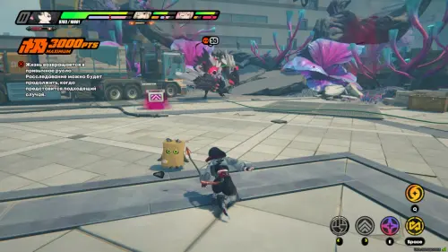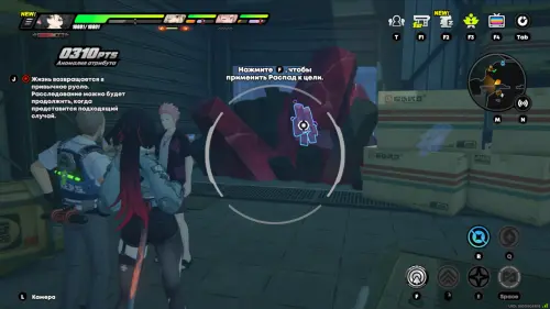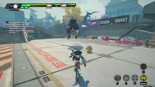 Вернитесь к телепорту «Площадь на 1-м этаже» и поднимитесь по лестнице справа от него. Устраните преграду техникой Проявления.