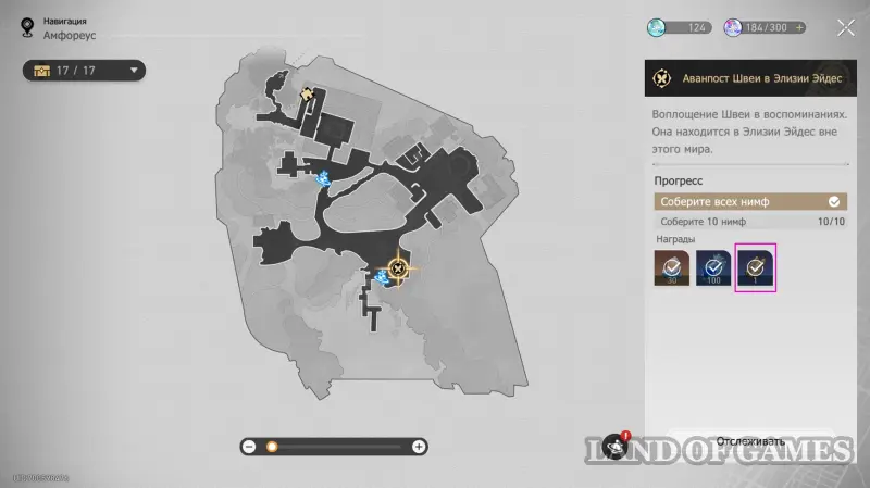 Итак, из свитка «Золотая пряжа пророчества: Элизия Эйдес», который Старая швея отдаст вместе с наградами за поимку всех нимф, вы получите две наводки: