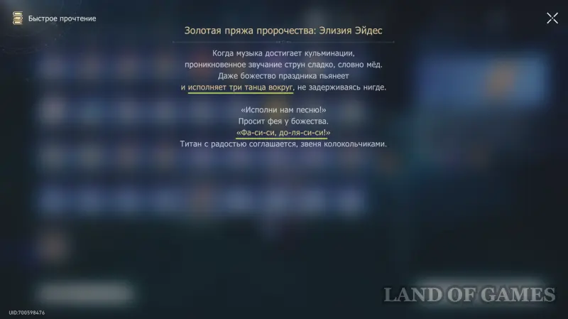 В тексте пророчества подсказки расположены в порядке выполняя необходимых действий (сначала надо станцевать, а потом сыграть мелодию). Теперь можно отправляться к месту, где будем получать ачивку.