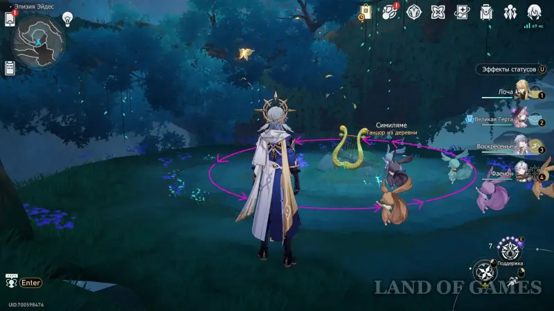 Перемещайтесь к якорю «Волшебный лес» на севере Меморного лабиринта, затем спускайтесь на север, пока не обнаружите фею Симиляме, танцора из деревни (если поговорить с ней, а затем с ее танцевальной труппой, можно дополнительно получить ачивку «Сон в летнюю ночь»). Первое, что нужно сделать — побегать 2-3 круга вокруг музыкального инструмента. В моменте рядом начнут появляться разноцветные колокольчики, на которых мы будем играть мелодию.