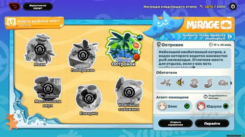 Вам откроется доступ к новой морской области, где вы сможете ловить различную рыбу. Можно позвать на помощь Элис или Юдзуху, которая значительно упростит процесс рыбалки. Свой улов можно продать за памятные монеты рыболова и приобрести на них новые украшения и удочки. Вы также можете разместить своих рыбок в океанариуме «Аквамираж» и демонстрировать посетителям.