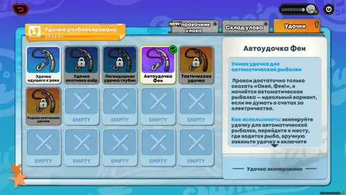 Отметим, что почти сразу же вы получите Автоудочку Феи, которая сможет ловить рыбу в фоновом режиме, то есть вам ничего и не придется делать. Рекомендуем вам просто оставлять ее в нужных вам локациях для поимки всех типов рыб в них.
