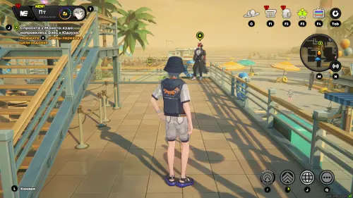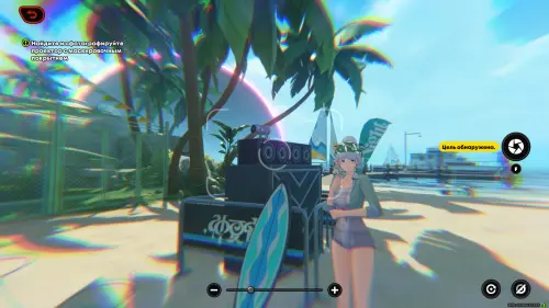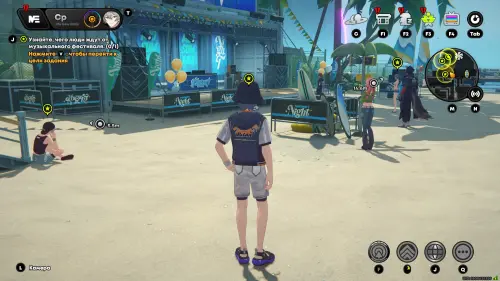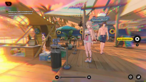 Поговорите с Юдзухой и Элис на пляже, а потом пораспрашивайте людей, собравшихся рядом с музыкальной площадкой. Уберите с помощью камеры очередной проектор и обсудите ситуацию с Терезой. Узнав про Импи, возьмитесь за его поиски с помощью камеры. Отыскав Импи, поболтайте с ним.