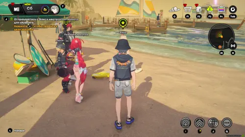Мы сначала выбрали Элис – подойдите к ней, а потом поприветствуйте приехавшую Люси. Далее пройдите первое испытание на серфингке, следуя инструкциям на экране. На видео ниже показано прохождение соответствующего этапа.