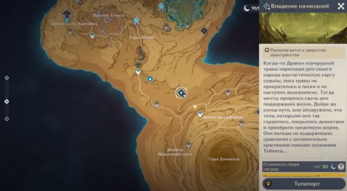 - Расположение: находится в пещере в районе Дар аль-Шифа (пустыня Сумеру).