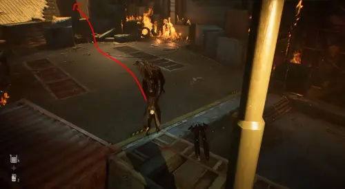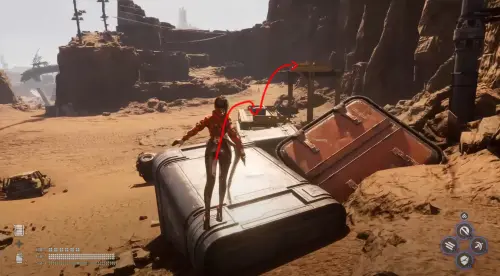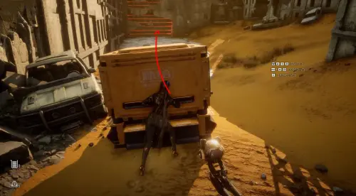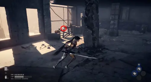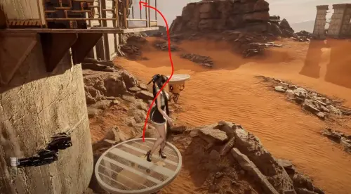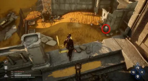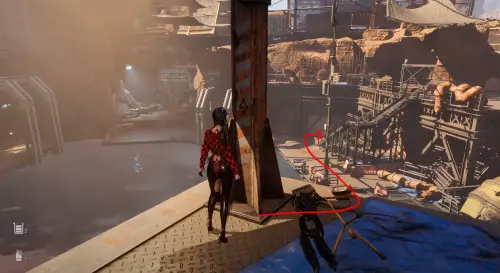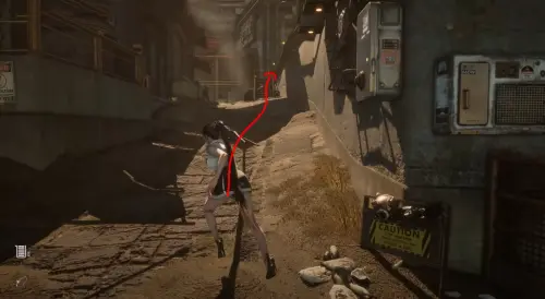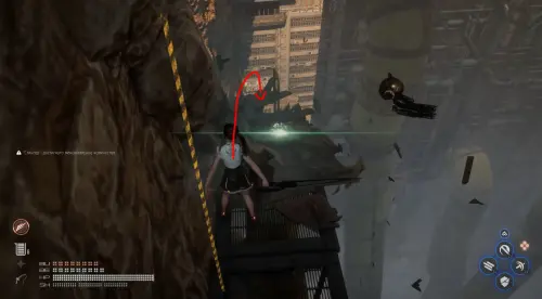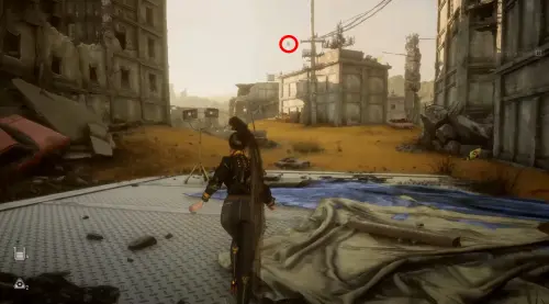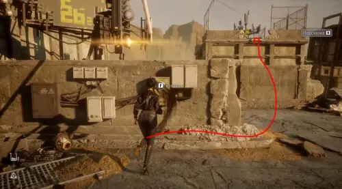 Спрыгните с контейнера и бегите к другому столбу с правой стороны, чтобы активировать третью консоль. Развернитесь и пройдите немного вперед, а затем сверните вправо, и вы заметите последнюю панель, которую нужно активировать.