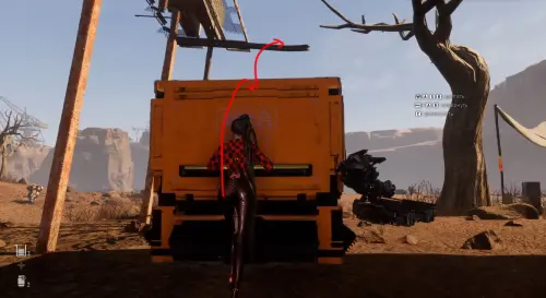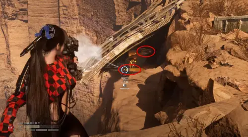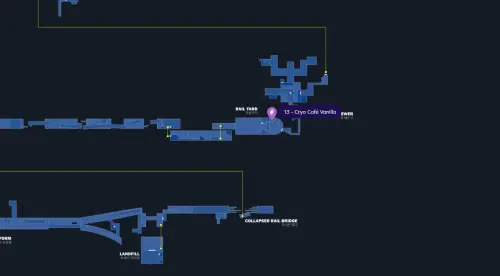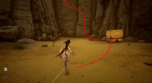 Войдите в пещеру рядом с лагерем снабжения «Обвалившийся поезд». Разберитесь с врагами и перетащите желтый контейнер к поручням на стене. Наверху вас будет ждать сундук с напитком.